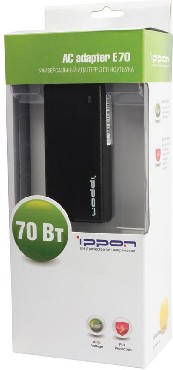 универсальный импульсный адаптер питания для ноутбуков с максимальной выходной мощностью 70Вт.Подробное описание и характеристики на сайте-www.ippon.ru.