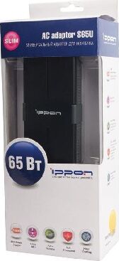 универсальный импульсный адаптер питания для ноутбуков с максимальной выходной мощностью 65Вт.Подробное описание и характеристики на сайте-www.ippon.ru.