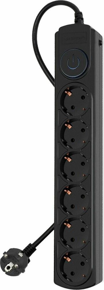 Входная вилка, тип: EURO. Длина шнура: 3. Максимальный ток нагрузки: 10. Максимальная нагрузка: 2200. Номинальное напряжение питающей сети: 220. Частота сети: 50. Максимальный импульсный ток помехи: 4500. Подавление импульсных помех: да. Подавление высокочастотных помех: да. Максимальная рассеиваемая энергия: 150. Защита от короткого замыкания: биметаллический размыкатель. Защита от перегрева: Автоматический (термобиметаллический) предохранитель. Особенности: 6 евророзеток с заземлением. Входная вилка Schuko. Защита от перегрузки. Защита от импульсов высокого напряжения. Защита от перетирания провода в месте входа в корпус фильтра. Ударопрочный негорючий корпус. Кнопка питания с индикатором сети.. Количество выходных розеток: 6. Габариты упаковки (ед) ДхШхВ: 0.36x0.1x0.057. Вес упаковки (ед): 0.58. Гарантия: 24 мес.. Цвет: черный. Длина шнура: 3 м. Количество выходных розеток: 6. Входная вилка: EURO. Максимальная нагрузка: 2200 Вт