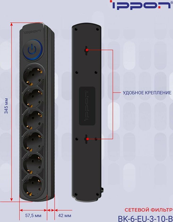 IPPON Сетевой фильтр BK-6-EU-3-10-B 3м (6 розеток) черный (коробка)