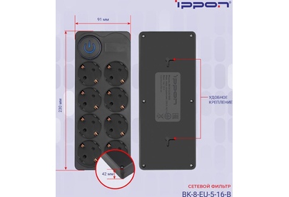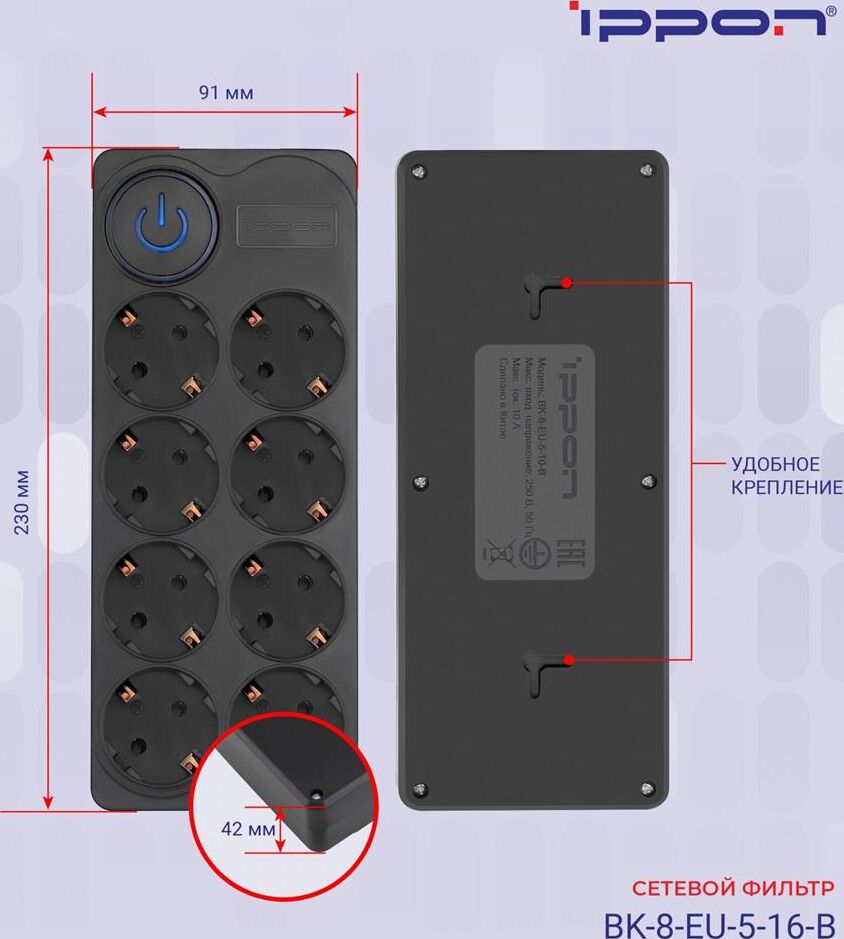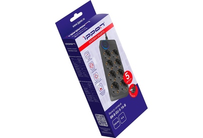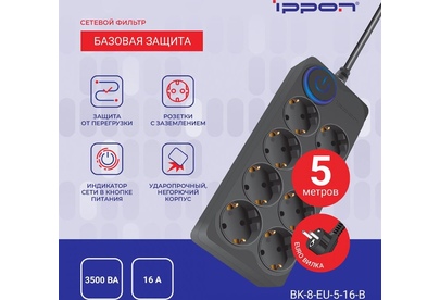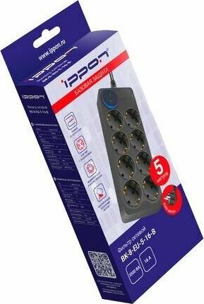 IPPON Сетевой фильтр BK-8-EU-5-16-B 5м (8 розеток) черный (коробка)