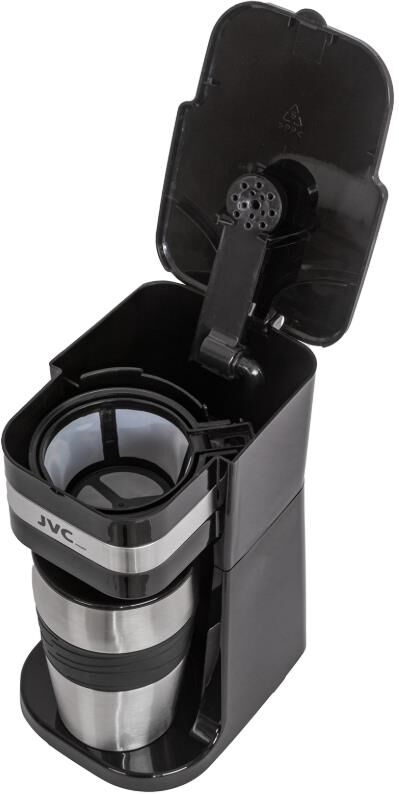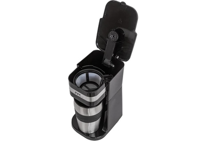 Кофеварка капельная с термокружкой, Термокружка из нержавеющей стали объема 450 мл, Объем резервуара для воды 420 мл, Вместимость фильтра до 20 грамм молотого кофе, Приготовление напитка из молотого кофе, Время приготовления около 4 мин, Автоматическое отключение при отсутствии воды, Многоразовый нейлоновый фильтр - удобно мыть, Компактный размер, Индикация включения, Корпус из высококачественного пластика, Мощность: 750 ватт, Питание 220-240 В, 60/50 Гц
