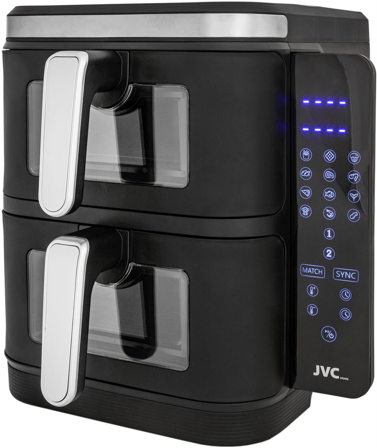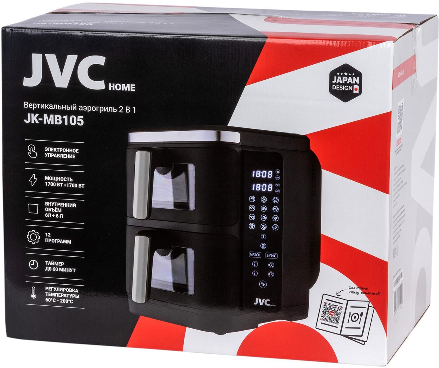 Аэрогриль вертикальный с 2-мя чашами, электронное управление, объем чаш 6 литров + 6 литров, мощность 3400 ватт, таймер, 12 автопрограмм, светодиодный сенсорный складной дисплей, смотровое окно, температура: от 60 до 200 градусов, одновременное приготовление разных блюд