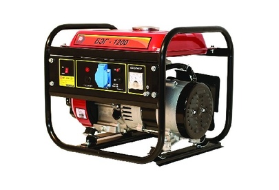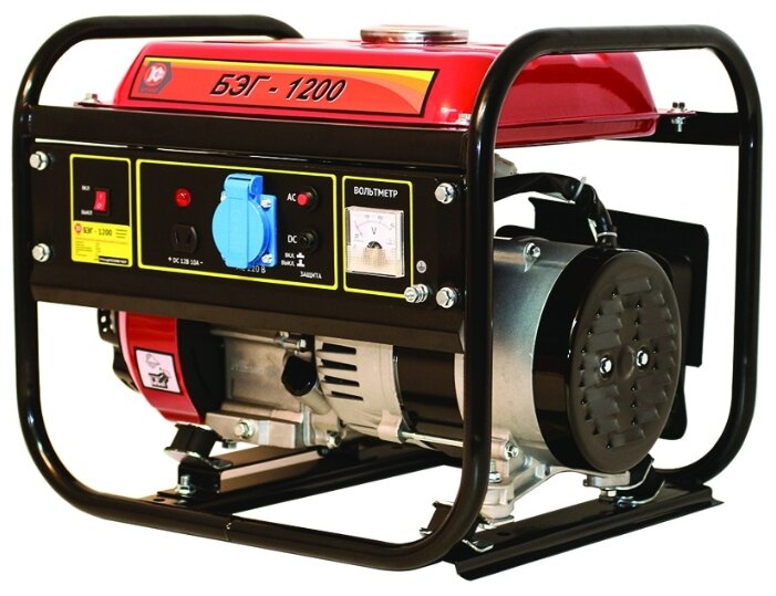 Переносной бензиномоторный электроагрегат с двигателем внутреннего сгорания Калибр БЭГ-1200 предназначен для автономного энергоснабжения,в повторно-кратковременном режиме,потребителей бытовых электроприборов со стандартными характеристиками сети переменного тока: напряжение – 220В,частота – 50Гц.Двигатель работает на неэтилированном бензине АИ- 92.Он оснащён мембранным карбюратором и электронной системой зажигания.Для запуска двигателя служит ручной стартёр.вырабатывает постоянный ток напряжением 12В для зарядки кислотных аккумуляторов; индикатор уровня топлива; электронная система зажигания; ручной стартёр.Характеристики,Модель двигателя 154F,Тип 1 цилиндровый,4-х тактный,Способ охлаждения,Воздушный принудительный,Мощность 3,5 л.с.Объём топливного/масляного бака 5,0 /0,36 л,Номинальное число оборотов 3600 об/мин,Число оборотов на холостом ходу 3000 об/мин,Стартёр ручной,Тип топлива бензин АИ-92 (неэтилированный),Тип масла SAE 5W-30/ SAE 10W-30,Тип зажигания электронное бесконтактное магнето,Генератор,Напряже