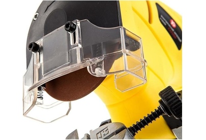 Число оборотов на холостом ходу 3000 об/мин. Размеры заточного круга абразивный круг 100х10х3,2 мм. Угол поворота рабочего стола (влево/вправо) 35 0. Номинальное напряжение/Частота 230 Вт/50 Гц. Класс безопасности (ГОСТ Р МЭК 60745-1-2011) II. Тип привода ремённый. Двигатель однофазный коллекторный. Габариты в упаковке (ДхШхВ) 300х190х200 мм. Вес (брутто/нетто) 1,9х1,6 кг.