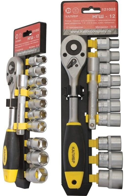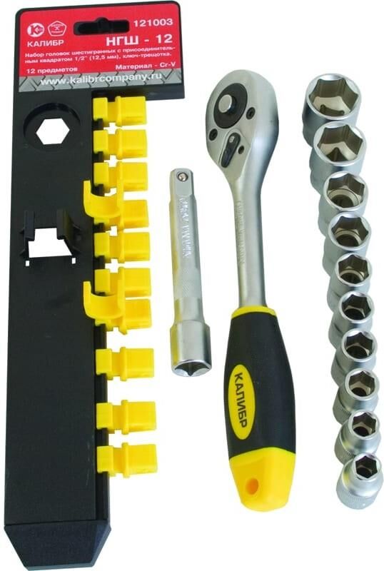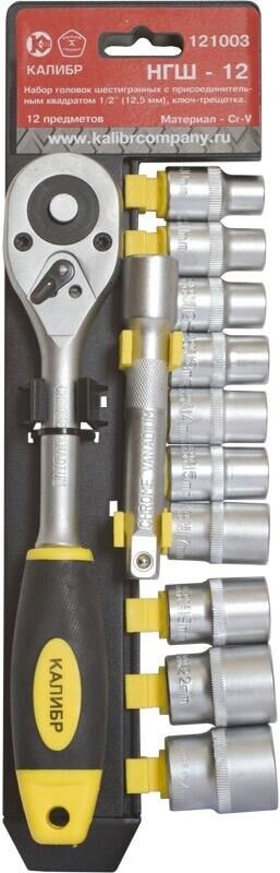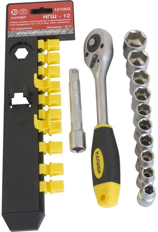 КАЛИБР НГШ-12 Набор головок шестигранных с трещеткой 12 предметов