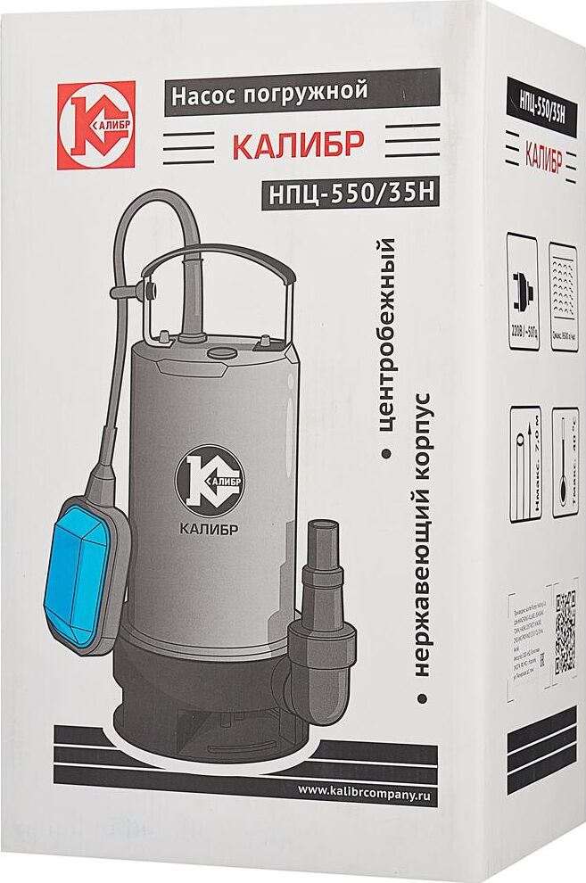 Потребляемая мощность 550 Вт. Максимальная производительность 9,5 м3/час (9500 л/час). Максимальный напор 7 м. Диаметр выходного фитинга 1~ G1~ 1 ~ G1 . Защита от сухого хода поплавковый выключатель. Максимальный размер пропускаемых частиц 35 мм. Максимальная глубина погружения 7 м. Степень защиты (по ГОСТ 14254-96) IPX8. Двигатель асинхронный, однофазный. Максимальная температура воды 400C. Параметры электросети 230 В ~ 50 Гц. Габариты в упаковке (ДхШхВ) 220х180х360 мм. Вес (брутто/нетто) 5,1/4,7 кг.