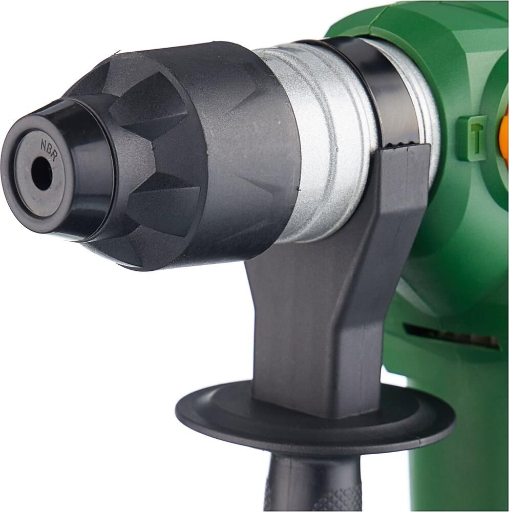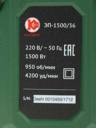 Потребляемая мощность 1500 Вт. Частота ударов 4200 уд/мин. Максимальный диаметр сверления: бетон х металл х дерево 36 х 13 х 42 мм. Энергия единичного удара 5,5 Дж. Число оборотов на холостом ходу 950 об/мин. Система зажима SDS-plus. Ключевой патрон 1/2-20UNF, диаметр сверла 1,5-13 мм. Максимальный уровень вибрации (по бетону в режиме долбления) 13,2 м/с2. Уровень звукового давления 92 дБ(А). Класс безопасности (ГОСТ Р МЭК 60745-1-2011) II. Электродвигатель Однофазный коллекторный. Номинальное напряжение/Частота 230 В/50 Гц. Габариты в упаковке (ДхШхВ) 370х115х330 мм