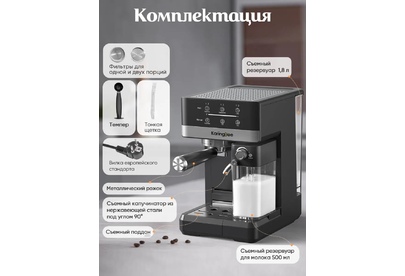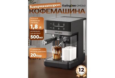 Мощность устройства (Вт) 1350 Вт Управление Тип управления сенсорное Технические особенности Объем емкости для воды 1.8 л Количество режимов работы 6 Длина кабеля 90 см Тип капучинатора автоматический Материалы Материал корпуса пластик Дополнительная информация Объем емкости для молока 0.5 л Количество уровней крепости кофе 2 Приготовление кофе двойной эспрессо; капучино; латте Давление помпы 20 бар Тип используемого кофе молотый Комплектация Кофемашина CM5340; Съемный резервуар для воды 1,8 л; металлический рожок; Фильтры для одной и двух порций; съемный поддон; Съемный резервуар для молока 500 мл; Тонкая щетка; темпер; Габариты Вес с упаковкой (кг) 5.75 кг Длина упаковки 28 см Высота упаковки 39 см Ширина упаковки 35 см Описание Полуавтоматическая кофемашина KaringBee CM5340 – ваш надежный помощник в приготовлении настоящего кофе. Она идеально подходит как для любителей традиционного, так и для тех, кто ценит двойную порцию крепкого ароматного напитка.