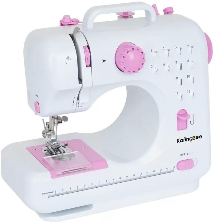 Мощность, Вт: 7,2 Корпус Материал корпуса: ABS Вес, кг: 1,95 Размер устройства, см: 28*12*24 Цвет: белый Питание: от сети и от батареек Комплектация Швейная машина Педаль управления Адаптер питания Швейный набор Инструкция на русском языке. Она может прошить 4-6 слоев ткани, способна справиться с джинсами. На выбор предоставлено 12 вариантов стежка, есть функция намотки нити на шпульку, подсветка, встроенный отсек для хранения ниток и инструментов. Обработка петель для пуговиц производится в 4 простых шага. Присутствует функция включения обратного хода одним нажатием. Также есть функция запуска машины и выбора скорости с помощью переключателя (помимо педали). Есть возможность заменять и использовать различные прижимные лапки. На переднюю поверхность машины нанесена линейка. Два варианта питания: от сети и от батареек, - делают машину мобильной. Горизонтальное расположение шпульки делает машину тихой, прозрачная пластина позволяет видеть количество ниток на шпульке.