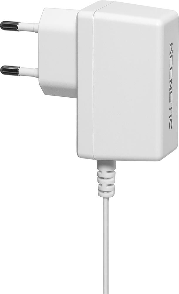 адаптер питания от сети 100-240 В, постоянное выходное напряжение 12 В с током до 1 А, совместим с любыми интернет-центрами Keenetic, которые имеют напряжение питания 9 или 12 В и потребляемый ток до 1 А, кабель 1.5 м