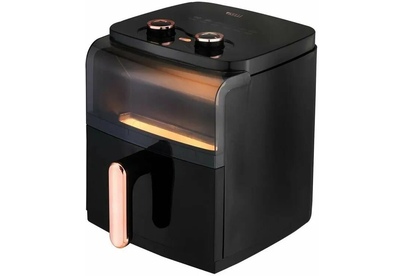Аэрогриль-мультипечь Мощность 2200 Вт Объем корзины 5 л Регулируемый таймер 1-30 мин Регулируемый термостат 80-200° Поддон и корзина с антипригарным покрытием Световой индикатор работы и готовности Прозрачное смотровое окно Сеть 220-240В, 50Гц