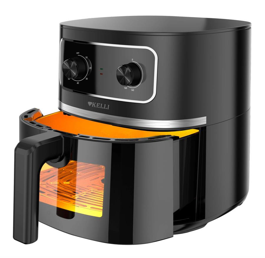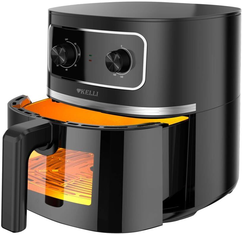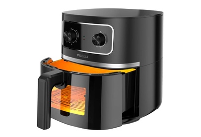 Аэрогриль-мультипечь Мощность 2200 Вт Объем корзины 5 л Регулируемый таймер 1-60 мин Регулируемый термостат 140-200° Поддон и корзина с антипригарным покрытием Световой индикатор работы и готовности Прозрачное смотровое окно Сеть 220-240В, 50-60Гц