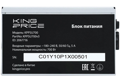 KINGPRICE Блок питания ATX 700W KPPSU700 (20+4pin) APFC 120mm fan 4xSATA