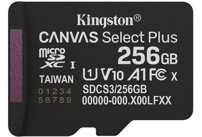 KINGSTON Карта памяти microSDXC UHS-I U1 Canvas Select Plus 256 ГБ, 150 МБ/с, Class 10, SDCS3/256GBS