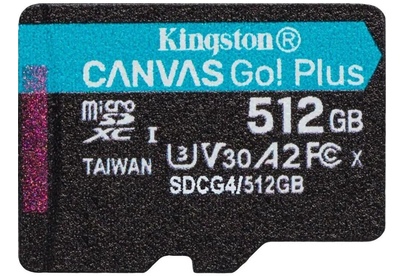 KINGSTON Карта памяти microSDXC UHS-I U3 Canvas Go Plus 512 ГБ, 200 МБ/с, Class 10, SDCG4/512GBSP, 1