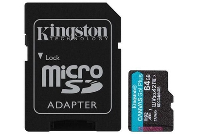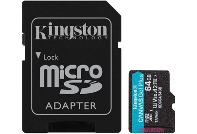 KINGSTON Карта памяти microSDXC UHS-I U3 Canvas Go Plus 64 ГБ, 200 МБ/с, Class 10, SDCG4/64GB, 1 шт.