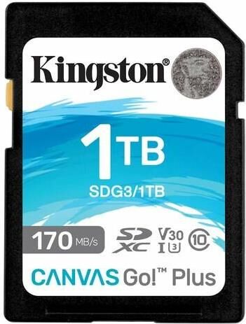 KINGSTON Карта памяти SDXC UHS-I U3 Canvas Go Plus 1024 ГБ, 170 МБ/с, Class 10, SDG3/1TB, 1 шт., без