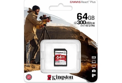 KINGSTON Карта памяти SDXC UHS-II U3 Canvas React Plus 64 ГБ, 300 МБ/с, 90X, Class 10, SDR2/64GB, 1