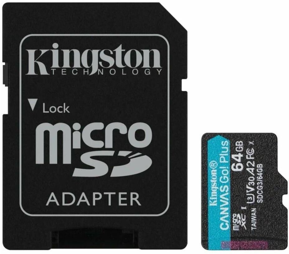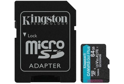 [Карта памяти ] Micro SecureDigital 64GB Kingston Canvas Go Plus, UHS-I, U3, V30, A2, с адаптером