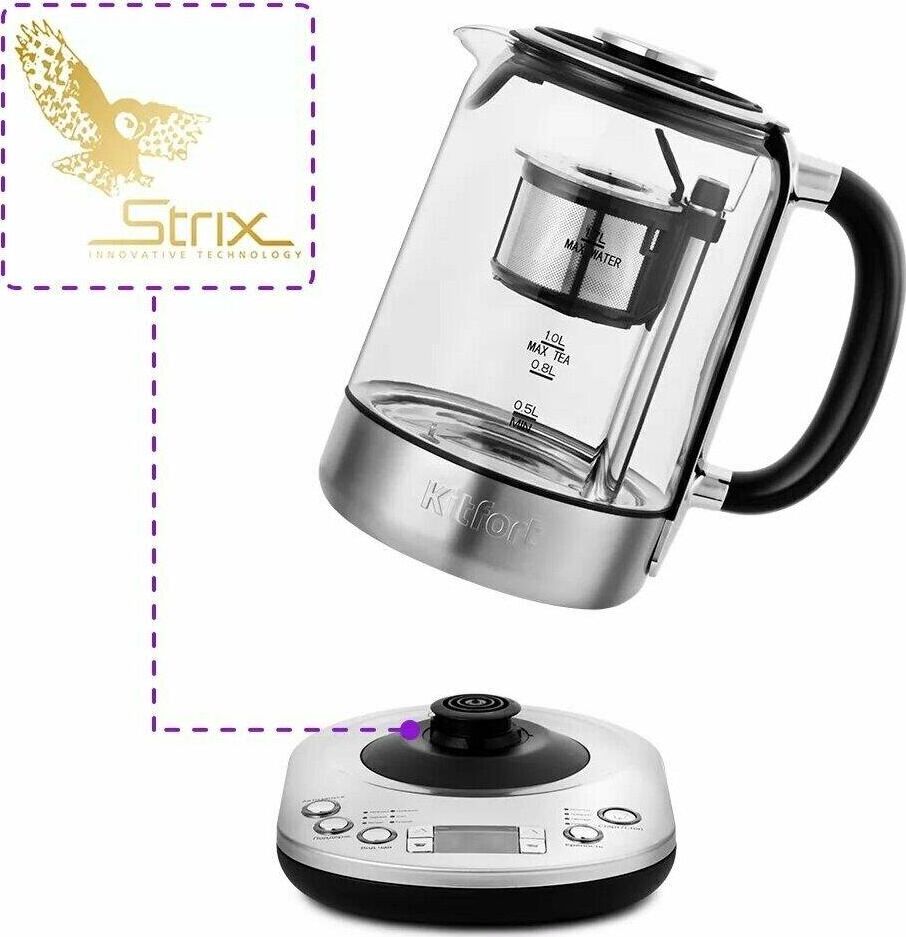 KITFORT Чайник электрический КТ-6116 1.7л. 2200Вт нержавеющая сталь/черный корпус: стекло/металл/пла