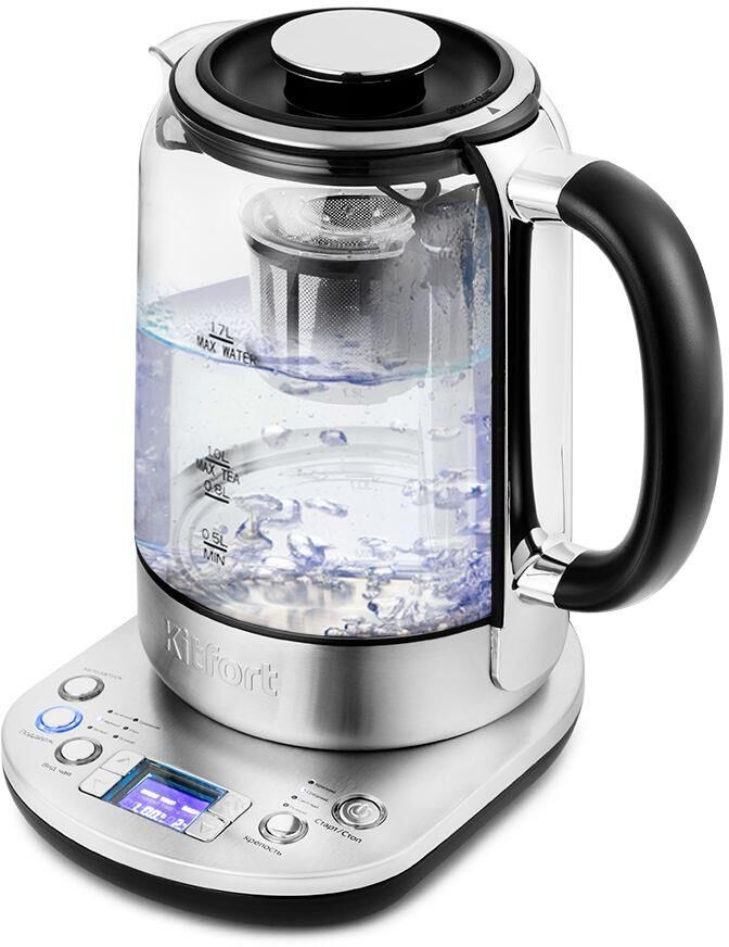 KITFORT Чайник электрический КТ-6116 1.7л. 2200Вт нержавеющая сталь/черный корпус: стекло/металл/пла