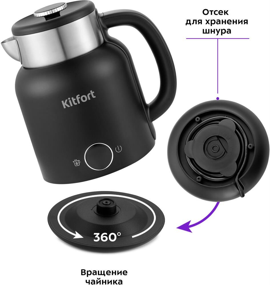 KITFORT Чайник электрический КТ-6196-1, 1.5л, металл/пластик