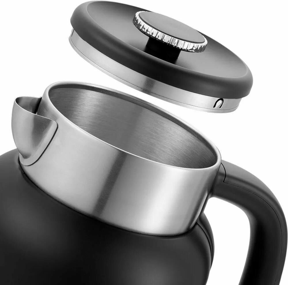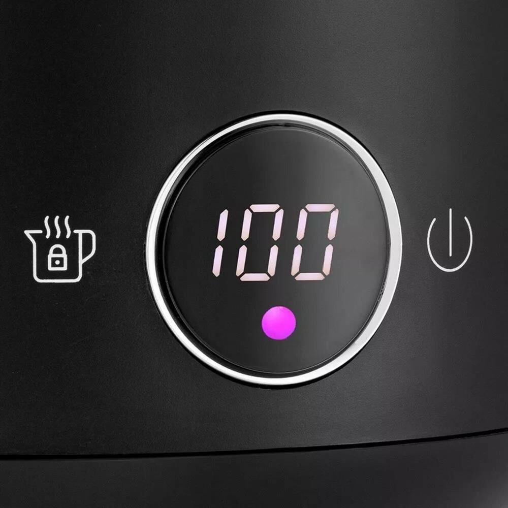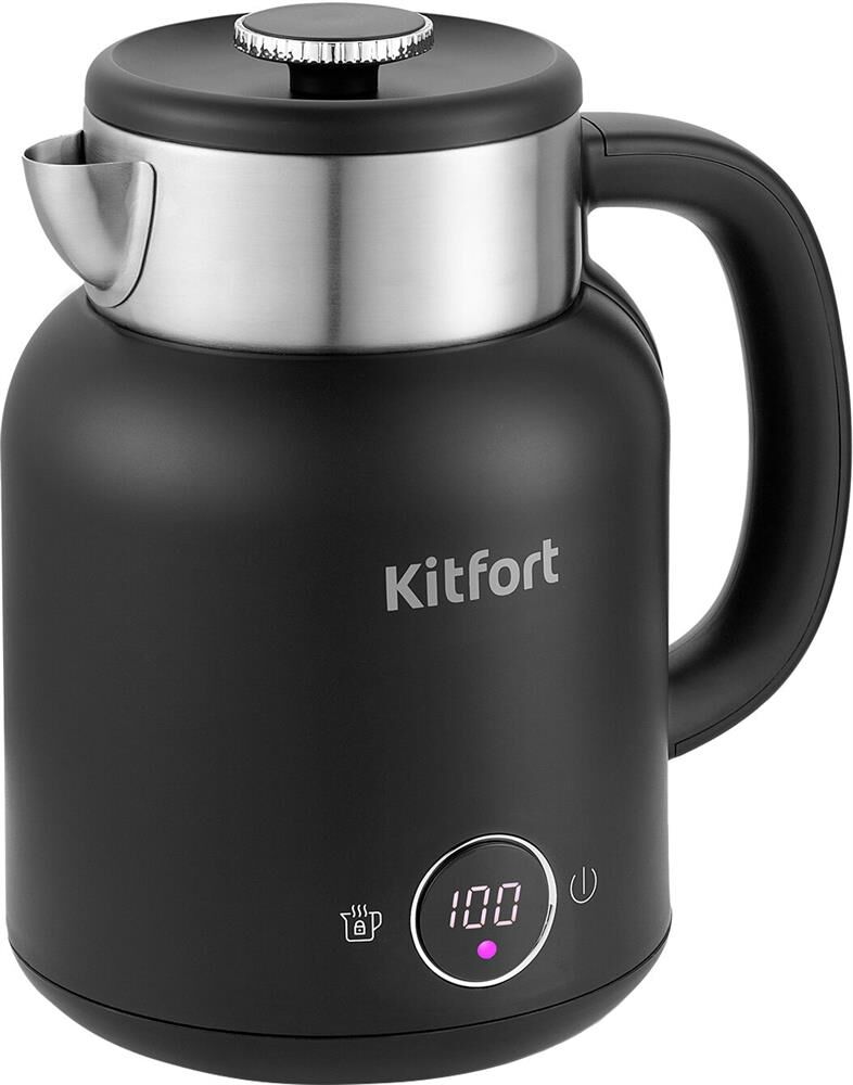 Мощность: 2200. Максимальный объем: 1.5. Нагревательный элемент: скрытый. Цвет: черный. Вес товара: 1.2. Габариты упаковки (ед) ДхШхВ: 0.21x0.205x0.27. Вес упаковки (ед): 1.6. Страна производства: Китай. Длина шнура: 0.6. Материал фильтра: нержавеющая сталь. Тип управления: электронное. Гарантия: 12 мес.. Материал корпуса: металл/пластик. Размер (ВхШхГ): 235х205х165 мм. Температурные режимы: 5 шт (40,70,80,90,100). Безопасность: автоотключение, защита от включения без воды. Индикация: включения. Конструктивные особенности: дисплей, подставка 360, съемная крышка, фильтр от накипи. Функции: поддержание температуры, регулировка температуры нагрева. Нагревательный элемент: скрытый. Объем: 1.5 л. Материал корпуса: металл/пластик. Функции: поддержание температуры, регулировка температуры нагрева. Мощность: 2200 Вт