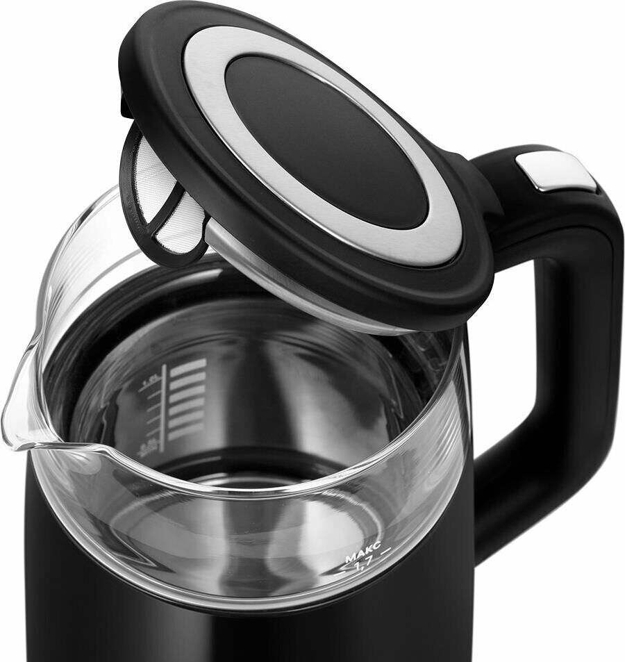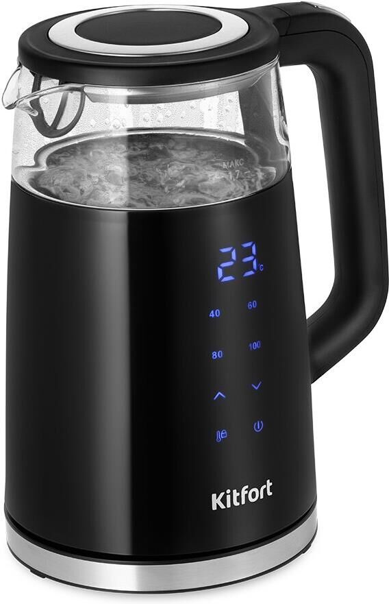 Мощность: 2200. Максимальный объем: 1.7. Нагревательный элемент: скрытый. Цвет: черный. Вес товара: 1.3. Температурные режимы: 12. Особенности: Может не только вскипятить воду, но и нагреть её до температуры от 40 до 95°C.. Габариты упаковки (ед) ДхШхВ: 0.225x0.192x0.268. Вес упаковки (ед): 1.6. Страна производства: Китай. Гарантия: 12 мес.. Материал корпуса: стекло/пластик. Конструктивные особенности: дисплей, подставка 360, фильтр от накипи. Безопасность: автоотключение, защита от включения без воды. Дополнительные функции: поддержание температуры, регулировка температуры нагрева. Индикация: включения, уровня воды. Объем: 1.7 л. Мощность: 2200 Вт. Нагревательный элемент: скрытый. Материал корпуса: стекло/пластик