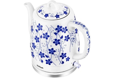 KITFORT Чайник электрический КТ-6788 1л. 1630Вт белый/синий корпус: керамика