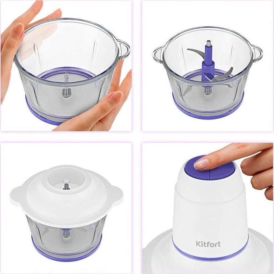 KITFORT Измельчитель электрический КТ-3050-1 1.5л 400Вт белый/фиолетовый