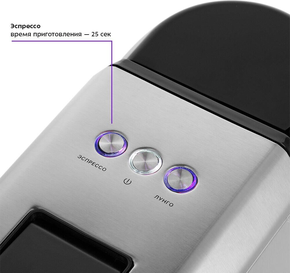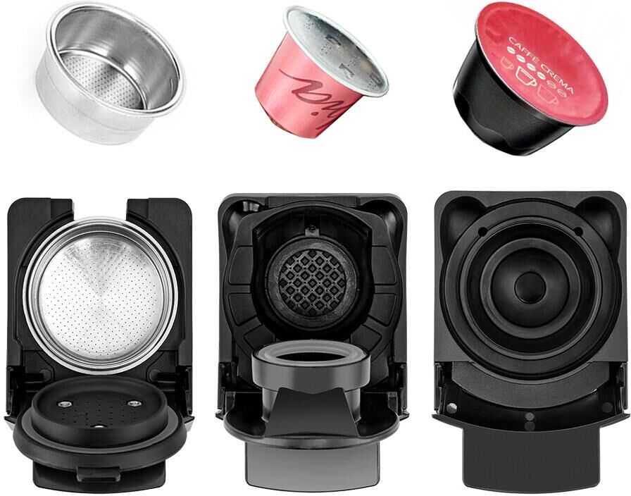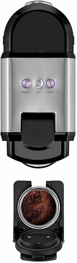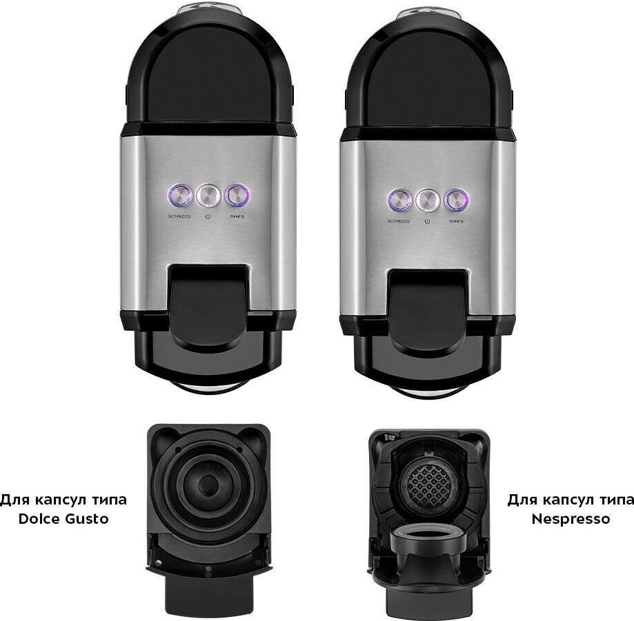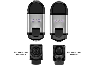 Мощность: 1450. Давление помпы: 20. Настройка размера порций: есть. Объем резервуара для воды: 0.6. Съемный дренажный отсек для капель: есть. Материал корпуса: нержавеющая сталь/пластик. Тип капсул: Nespresso/Dolce Gusto. Автоматическое выключение: есть. Вес: 2.9. Съемный резервуар для воды: есть. Типы напитков: эспрессо, лунго. Тип нагревателя: бойлер. Время автовыключения: 15. Габариты упаковки (ед) ДхШхВ: 0.32x0.15x0.28. Вес упаковки (ед): 3.62. Страна производства: Китай. Гарантия: 12 мес.. Размеры: 110 х 230 х 250 мм. Цвет: серебристый, черный. Мощность: 1450 Вт. Давление: 20 Бар. Капсулы: Nespresso/Dolce Gusto. Объем резервуара для воды: 0.6 л. Тип нагревателя: бойлер. Функции: автовыключение
