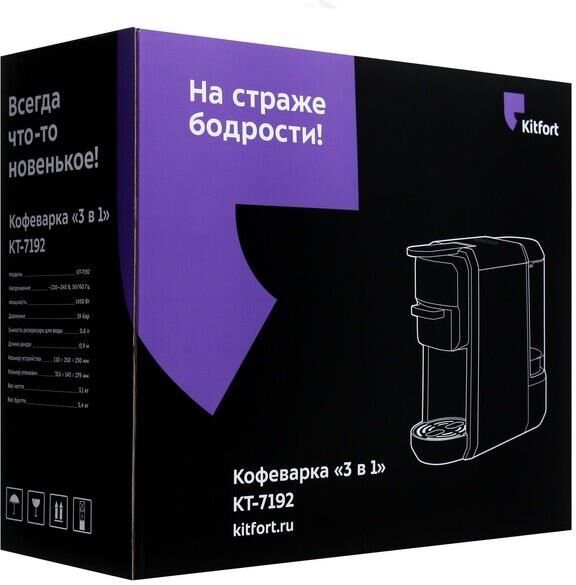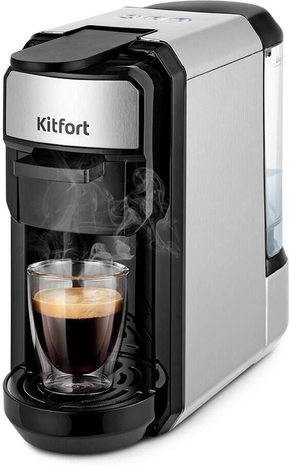 KITFORT Капсульная кофеварка КТ-7192, 1450Вт, цвет: серебристый