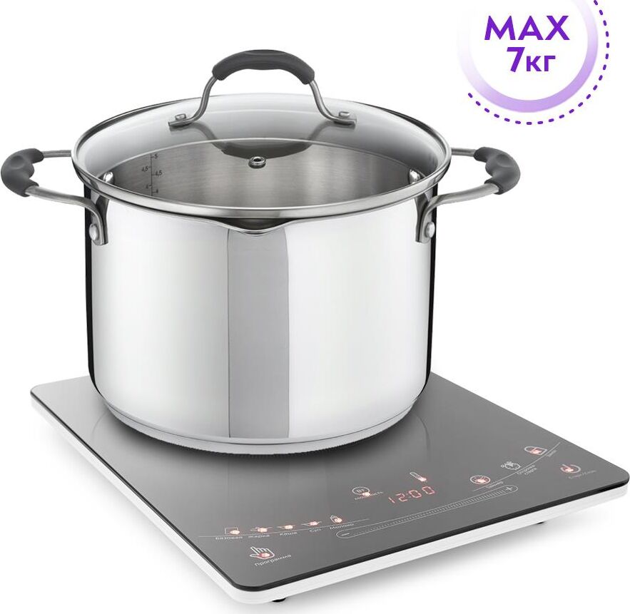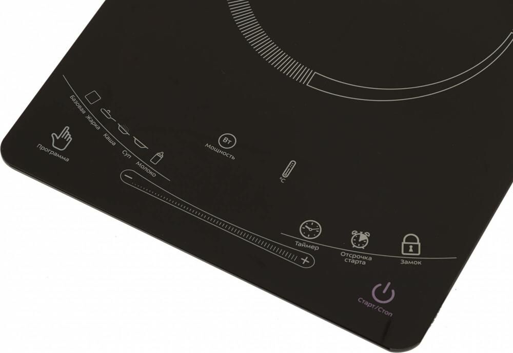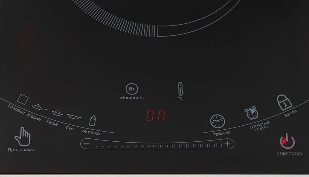 10 мощностных и 10 температурных режимов работы, 5 предустановленных программ (базовая, жарка, каша, суп, молоко), рекомендуемый диаметр дна используемой посуды от 12 до 26 см.