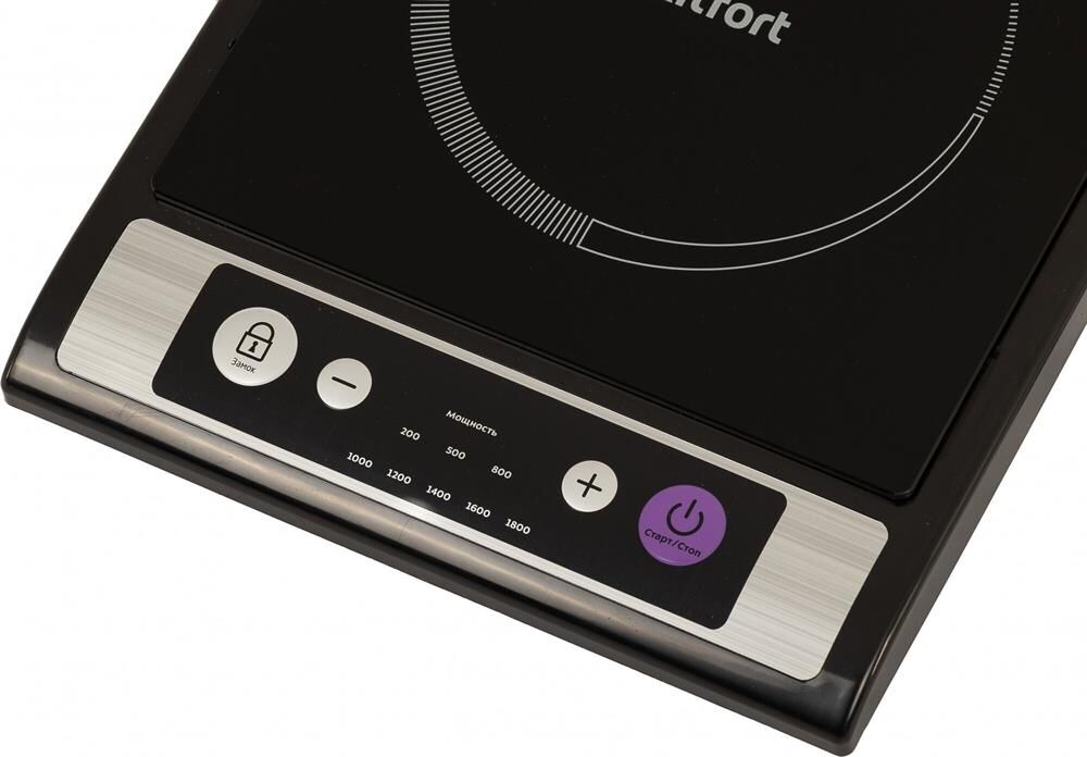 Мощность 1800 Вт. Управление кнопочное. Количество программ 1. Режимов работы 8. Размер прибора 325 х 280 x 63 мм. Вес прибора 1,7 кг. Рекомендуемый диаметр дна используемой посуды от 12 до 26 см.