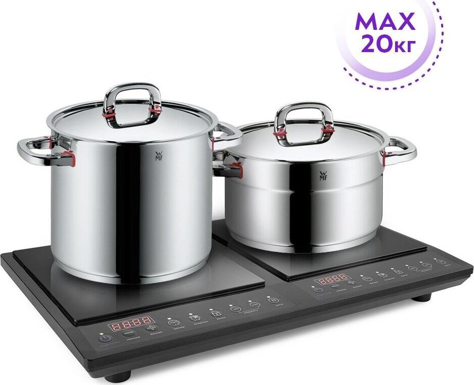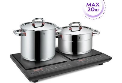 Мощность 2000 + 2000 Вт. Управление кнопочное. Количество программ 1. Режимов работы 10. Размер прибора 588 х 348 х 68 мм. Вес прибора 4,2 кг. Рекомендуемый диаметр дна используемой посуды от 12 до 26 см.
