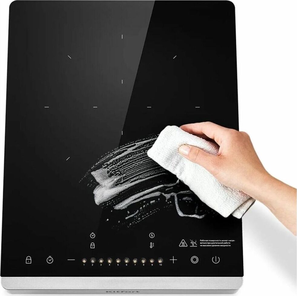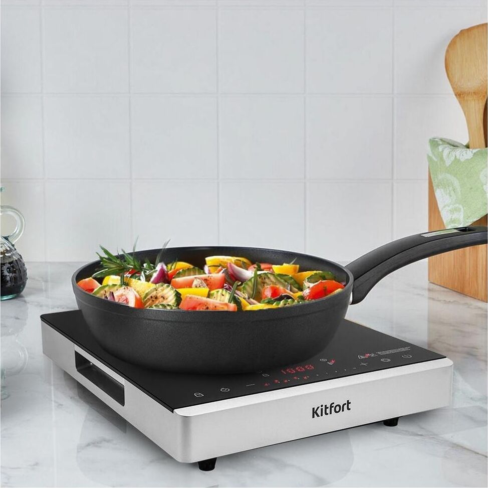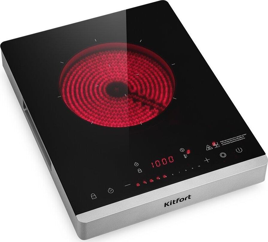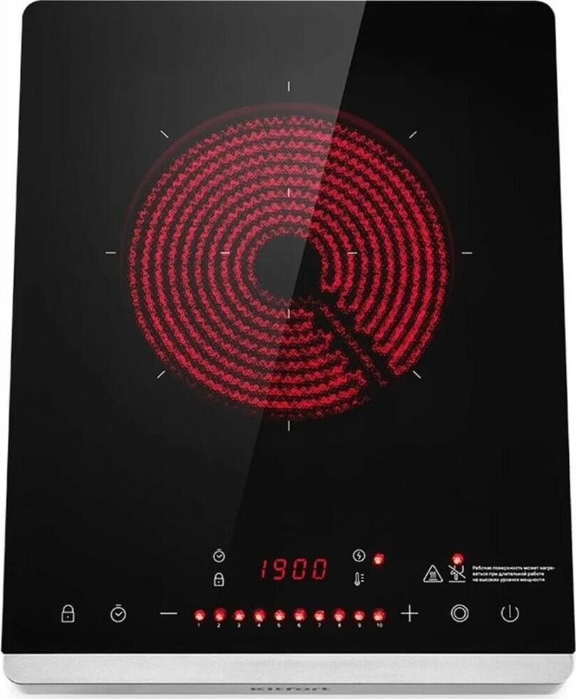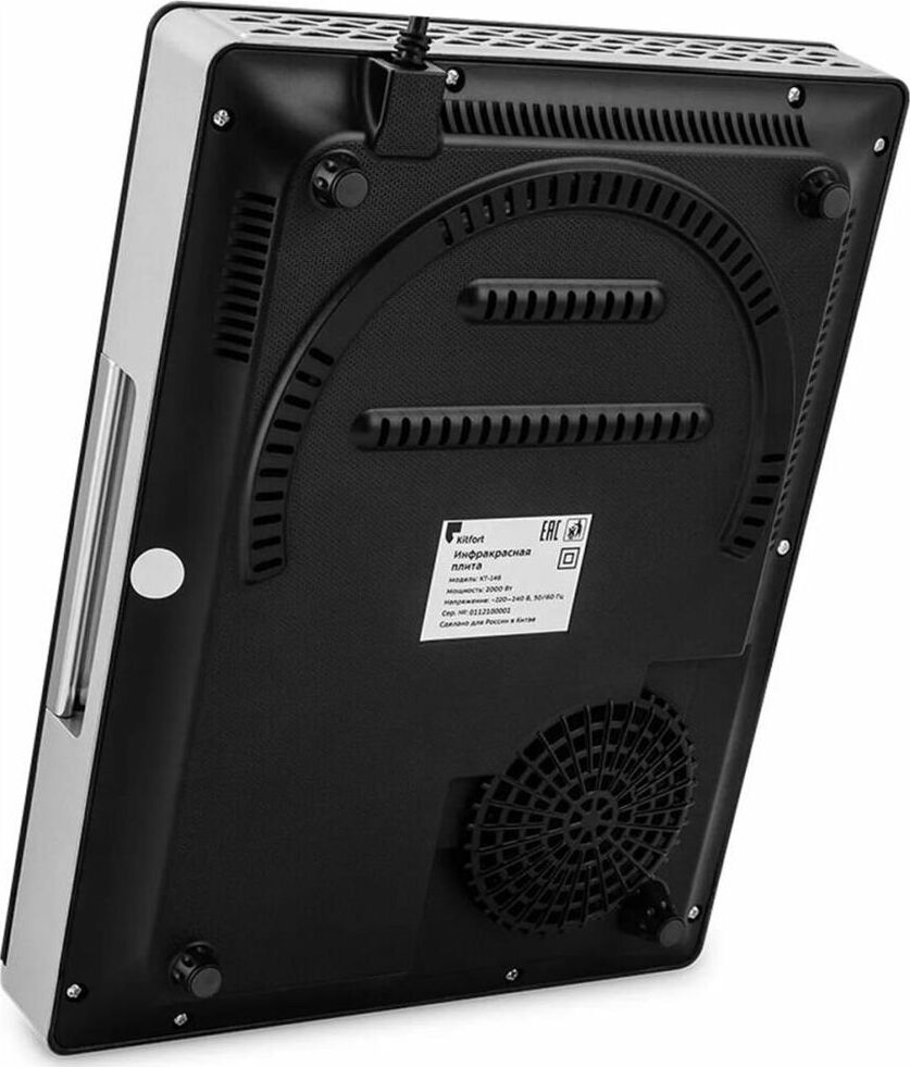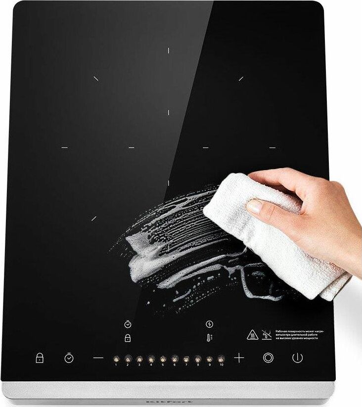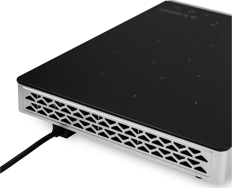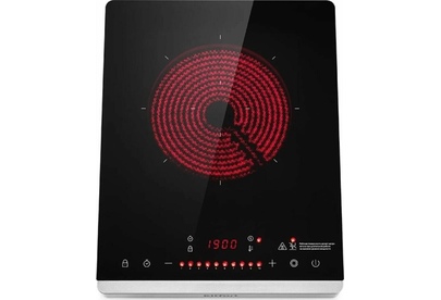 Мощность 2000 Вт. Управление сенсорное. Количество программ 1. Ступеней мощности 20. Таймер до 24 ч с шагом +10 минут/- 1 минута. Длина шнура 1,4 м. Диаметр нагревателя 210 мм. Размер устройства 285 х 365 х 67 мм.