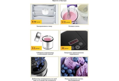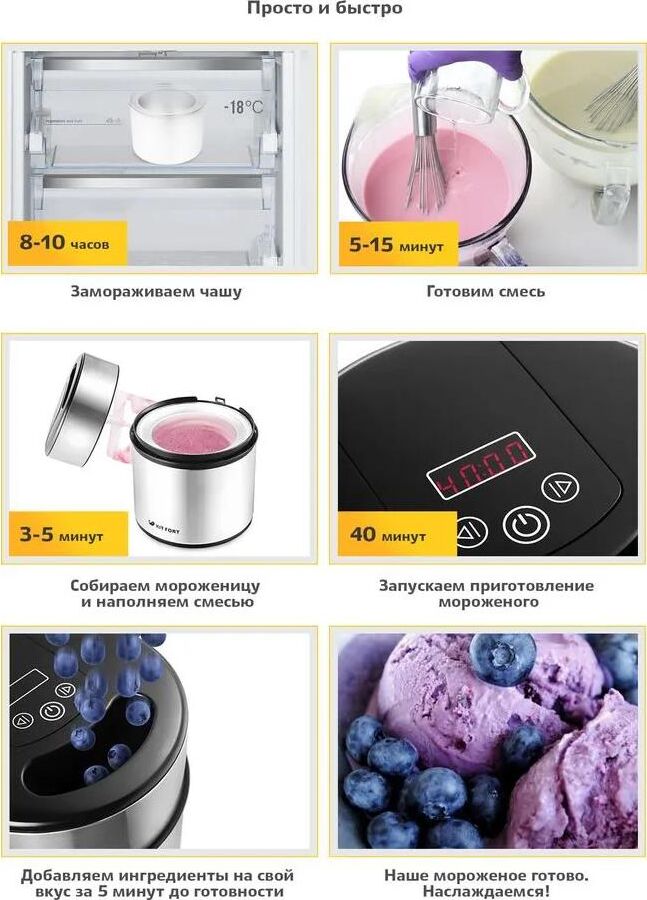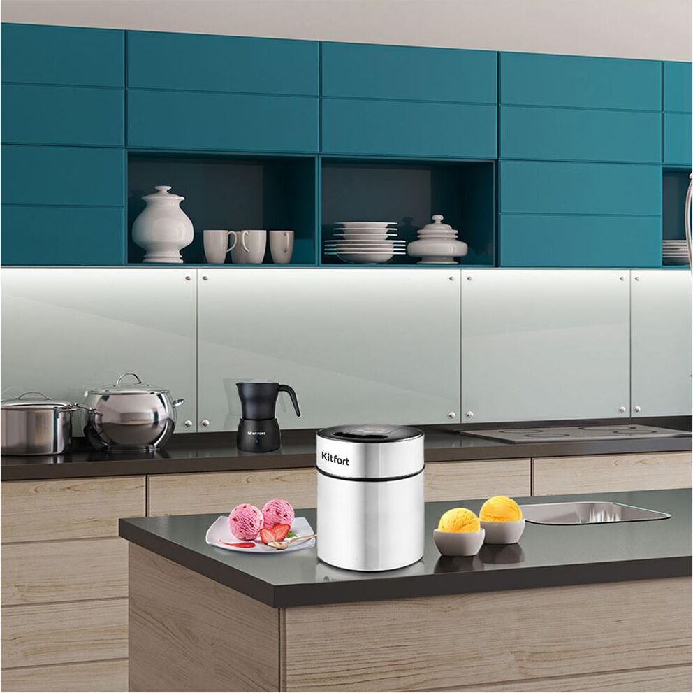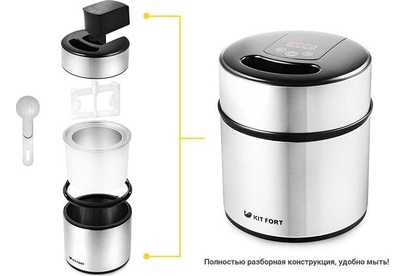 Мороженица Kitfort КТ-1804 12Вт 2000мл. серебристый/черный Полуавтоматическая мороженица Kitfort КТ-1804 поможет приготовить вам настоящее мороженое из натуральных продуктов, а также сорбет, джелато и замороженный йогурт. Мороженица имеет стильный металлический корпус, снабжена системой смешивания и имеет чашу заполненную хладагентом для охлаждения смеси. Мощность 12 Вт Объем чаши 2000 мл Электропитание от бытовой сети Цвет серебристый/черный Размеры (ШхВхГ) 210х240х210 мм Вес 3 кг Габариты упаковки (ед) ДхШхВ 0.24x0.23x0.17 м Вес упаковки (ед) 3.55 кг