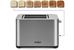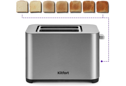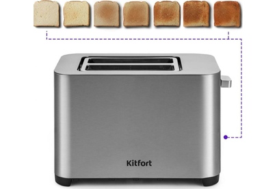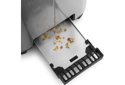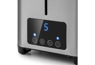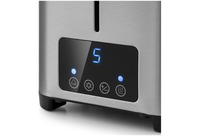 Управление электронное. Мощность 750-850 Вт. Дисплей есть. Количество отделений 2. Количество степеней обжаривания 7. Автоцентрирование тостов есть. Выдвижной (съемный) лоток для крошек есть. Подогрев готовых тостов есть. Разморозка и обжаривание есть. Длина сетевого шнура 0.75 м. Материал корпуса нержавеющая сталь/пластик.