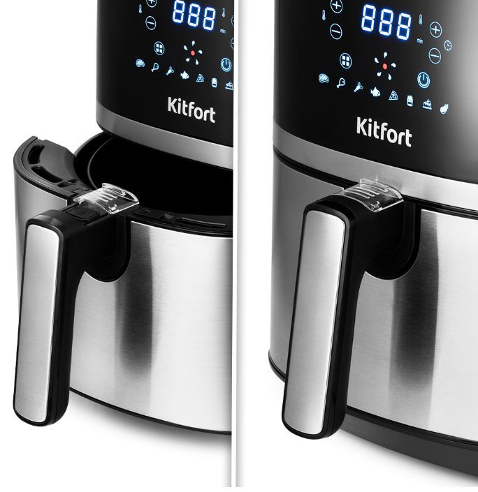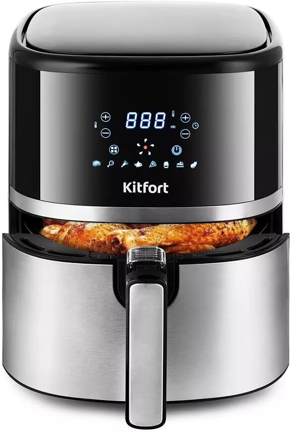 Мощность 1500 Вт. Длина шнура 0,7 м. Объём 3,3 л. Количество программ приготовления 8 + ручные настройки. Регулировка температуры от 80 °C до 200 °C с шагом 5°C. Таймер до 60 мин, шаг 1 мин. Управление сенсорное. Размер устройства 265 х 330 х 330 мм.