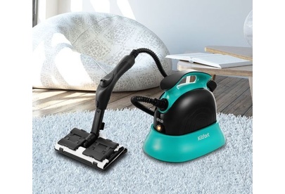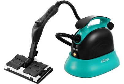 Пароочиститель напольный Kitfort КТ-9102-3 1500Вт черный/бирюзовый Kitfort КТ-9102 способен заменить паровую швабру, дезинфектор, стеклоочиститель, отпариватель. Горячий пар под давлением в 4 бара очищает разные поверхности, удаляет жир, известковые отложения, убивает патогенные микроорганизмы, отпаривает ткани. Мощность нагревателя 1500 Вт Максимальное давление пара 4 Бар Время нагревания 6 мин Емкость первого бака для воды 1.1 л Регулятор расхода пара на рукоятке пистолета Длина парового шланга 1.4 м Паровой пистолет есть Форсунка для мытья окон есть Насадки в комплекте Скребок для стекла используется для чистки окон, зеркал, кафеля. Струйная насадка подходит для чистки плинтусов, щелей и других углов. Щётки - для удаления стойких загрязнений. С тряпкой можно отпаривать одежду, шторы, мягкую мебель. И это далеко не всё! Принадлежности в комплекте В комплект, помимо различных насадок, входят также щётка для пола, тряпка, рамка для чистки ковров, удлинительные трубки, что делает КТ