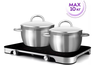 Тип настольной плиты: Индукционная. Количество индукционных конфорок: 2. Материал рабочей поверхности: стеклокерамика. Максимальный вес нагрузки: 10. Индикатор работы: есть. Количество режимов регулировки температуры: 12. Управление: сенсорное. Тип таймера: электронный. Дисплей: есть. Таймер: есть. Защитное отключение: есть. Прорезиненные ножки: есть. Длина шнура питания: 1.4. Тип конфорки электрической настольной плиты: индукционная. Блокировка от детей: есть. Вес: 4.8. Габариты упаковки (ед) ДхШхВ: 0.63x0.08x0.41. Вес упаковки (ед): 5.8. Гарантия: 12 мес.. Конфорка: диаметр160мм. Правая ближняя конфорка: мощность 1300. Левая ближняя конфорка: мощность 1800. Цвет: черный/серебристый. Размеры (ШхВхГ): 57 x 4.5 x 38 см. Таймер: электронный. Цвет: черный/серебристый. Материал рабочей поверхности: стеклокерамика. Особенности: дисплей. Количество конфорок: индукционных 2. Управление: сенсорное
