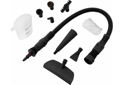 Мощность нагревателя: 1200. Максимальное давление пара: 2.6. Время нагревания: 4. Максимальное количество пара: 30. Количество баков для воды: 1. Емкость первого бака для воды: 0.3. Регулятор расхода пара: на корпусе. Защита от детей: есть. Предохранительный клапан: есть. Длина парового шланга: 0.8. Вес (без принадлежностей): 1.8. Особенности: У пароочистителя есть резервуар для моющего средства ёмкостью 0,15 л, который просто наполняется любым жидким очистителем. Резервуар съёмный и легко моется после работы пароочистителя.. Насадки в комплекте: Струйная насадка, угловая насадка, круглая нейлоновая щётка, круглая латунная щётка, скребок, скребок для стекла и отпаривания тканей, щелевая щётка.. Принадлежности в комплекте: Стакан для воды, тряпка для отпаривания.. Вид пароочистителя: Ручной. Габариты упаковки (ед) ДхШхВ: 0.34x0.19x0.26. Вес упаковки (ед): 3.18. Гарантия: 12 мес.. Размер (ДхШхВ): 240 х 120 х 270 мм. Цвет: белый/фиолетовый. Мощность: 1200 Вт. Давление пара: 2.6 Бар. Производительность пара: 30 г