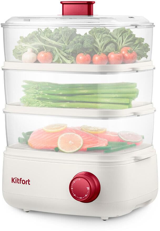 KITFORT Пароварка КТ-6830, белый и красный