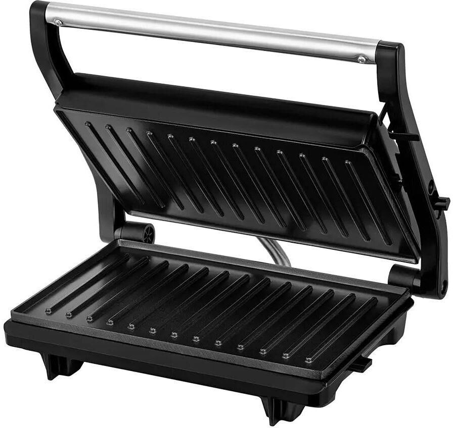 Покрытие рабочих частей: антипригарное. Индикатор нагрева: есть. Нагревательный элемент: ТЭН. Тип управления: механическое. Форма нагревательных частей: прямоугольная. Формы для готовки: пластины для бутербродов. Раздельное включение нагревательных элементов: есть. Изменяемый цвет подстветки в зависимости от режима: есть. Открытие верхней части на 180°: есть. Индикатор включения: есть. Автоматическое отключение (защитное): есть. Вес товара: 1.4. Габариты упаковки (ед) ДхШхВ: 0.32x0.13x0.29. Вес упаковки (ед): 1.5. Страна производства: Китай. Гарантия: 12 мес.. Мощность: 750 Вт. Размер рабочей поверхности: 14.5 х 23 см. Материал корпуса: нержавеющая сталь/пластик. Цвет: черный и серебристый. Размеры (ШхВхГ): 27.5 х 8.5 х 21.6 см. Тип управления: механическое. Особенности: антипригарное покрытие, индикатор нагрева. Размер рабочей поверхности: 14.5 х 23 см. Мощность: 750 Вт