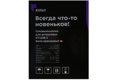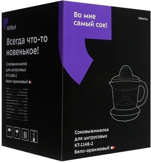 KITFORT Соковыжималка КТ-1148-2, цитрусовая, белый и оранжевый