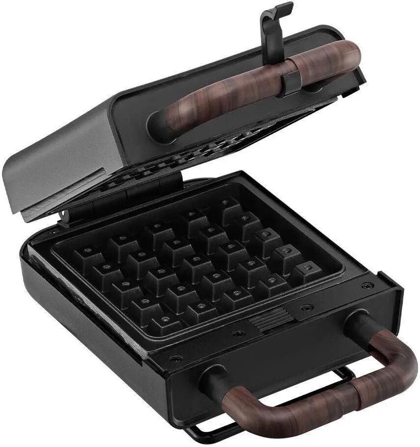 Покрытие рабочих частей: антипригарное. Съемные формы: съемные. Индикатор нагрева: есть. Тип управления: механическое. Форма нагревательных частей: квадратная. Формы для готовки: пластины для вафель. Количество отделений в пластине для вафель: 1. Индикатор включения: есть. Замок фиксации закрытия крышки: есть. Вес товара: 0.9. Габариты упаковки (ед) ДхШхВ: 0.177x0.125x0.26. Вес упаковки (ед): 1.1. Страна производства: Китай. Гарантия: 12 мес.. Мощность: 600 Вт. Размер рабочей поверхности: 12 х 13.1 см. Материал корпуса: пластик. Цвет: черный и коричневый. Размеры (ШхВхГ): 14 х 9 х 22 см. Особенности: антипригарное покрытие, индикатор нагрева, съемные формы. Мощность: 600 Вт. Тип управления: механическое. Количество отделений: в пластине для вафель 1. Размер рабочей поверхности: 12 х 13.1 см