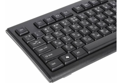 назначение: для настольного компьютера; интерфейс подключения: USB; тип клавиатуры: мембранная; цвет: черный; длина кабеля: 1.5 м; общее количество клавиш: 104; размеры: 449x22x151 мм, вес: 510 г