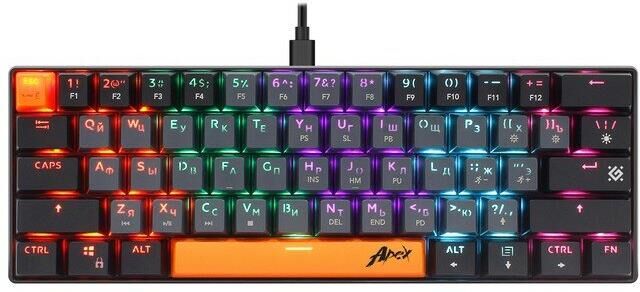 Клавиатура DEFENDER (45002) Apex GK-002 RU,3цв/серый,радуж,61к,крас.св серый