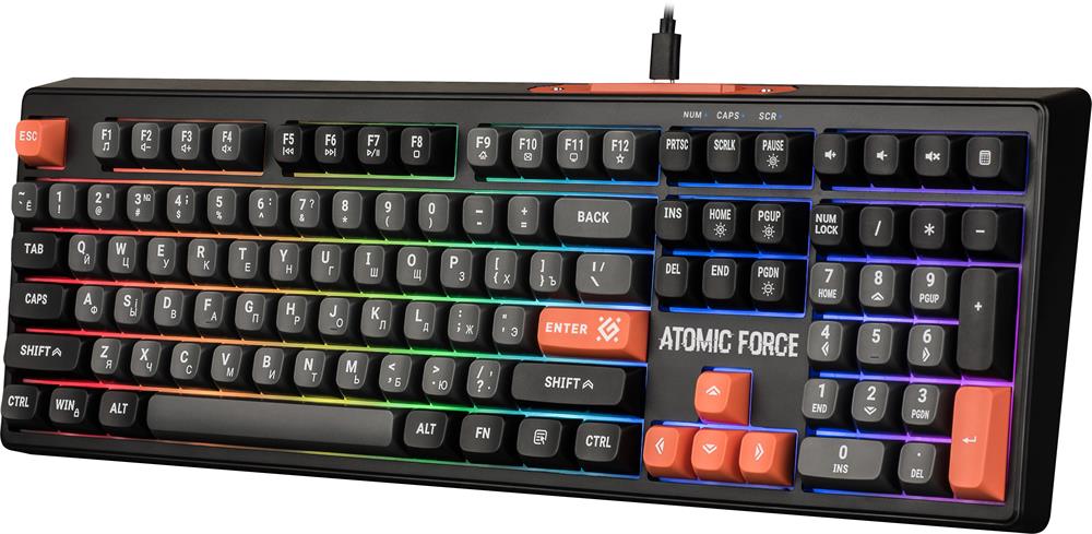 Клавиатура DEFENDER (45005) Atomic Force GK-005 RU,чер/сер,108кн+FN,радуж,1.5м